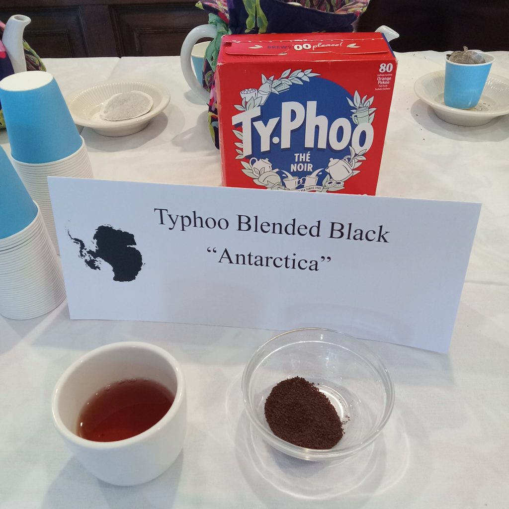 Among the contents of the Scott expedition hut are tins of the special tea blend Typhoo created for the explorers. In 2012, Typhoo Tea sold a recreation of that blend to raise money for preserving the hut. Debbie Waugh presented a similar black blend from Typhoo Tea, reminiscent of what early Antarctic explorers drank.