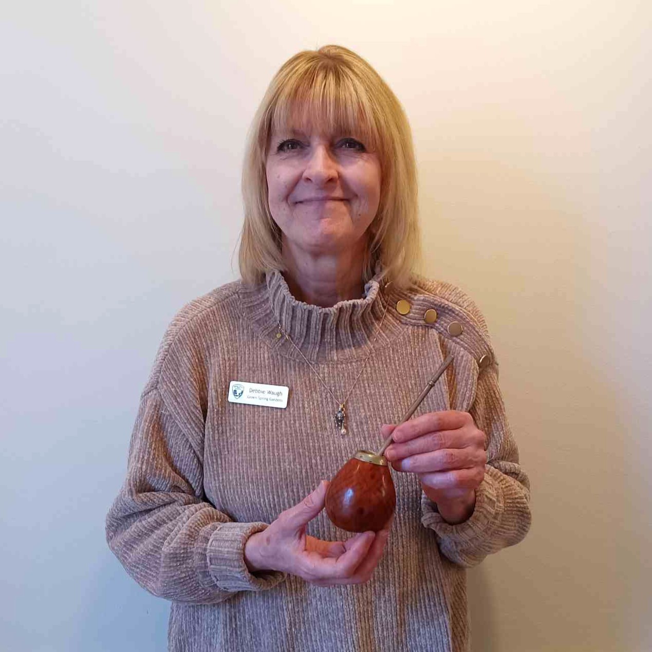 Debbie Waugh with a traditional mate gourd, common for drinking South American tea