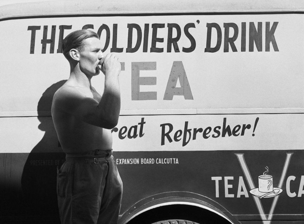 In 1942, the British government bought all the black tea available on the European market to ensure their soldiers had a steady supply on the front lines. In the field, soldiers improvised a variety of heating elements to boil water for tea, including igniting sand mixed with petrol and taking advantage of heat coming off vehicle engines.