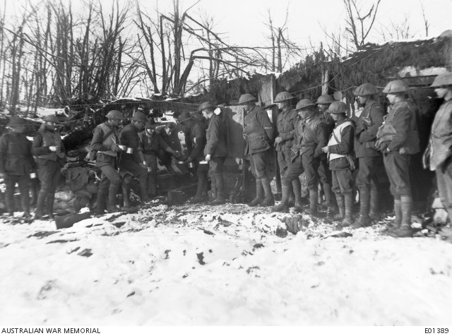 Australian soldiers lining up for tea